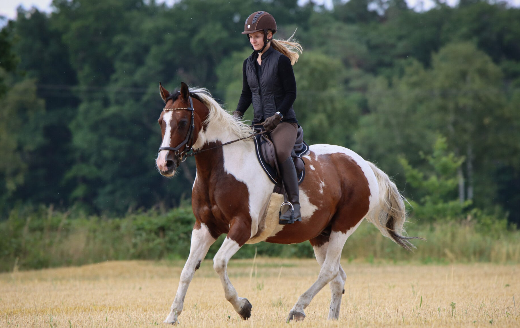 Schon als Kind war die Pferdewiese mein Lieblingsort. Mit meinem Pflegepferd Biene und meinem ersten eigenen Pony Lisa habe ich die Freiheit des Ausreitens in vollen Zügen genossen – Stoppelfelder, Wälder, endlose Galoppstrecken. Turniere waren nie mein Ziel. Für mich stand schon immer der Spaß, die Freiheit und die Leichtigkeit mit dem Pferd im Mittelpunkt, nicht die Schleifen.